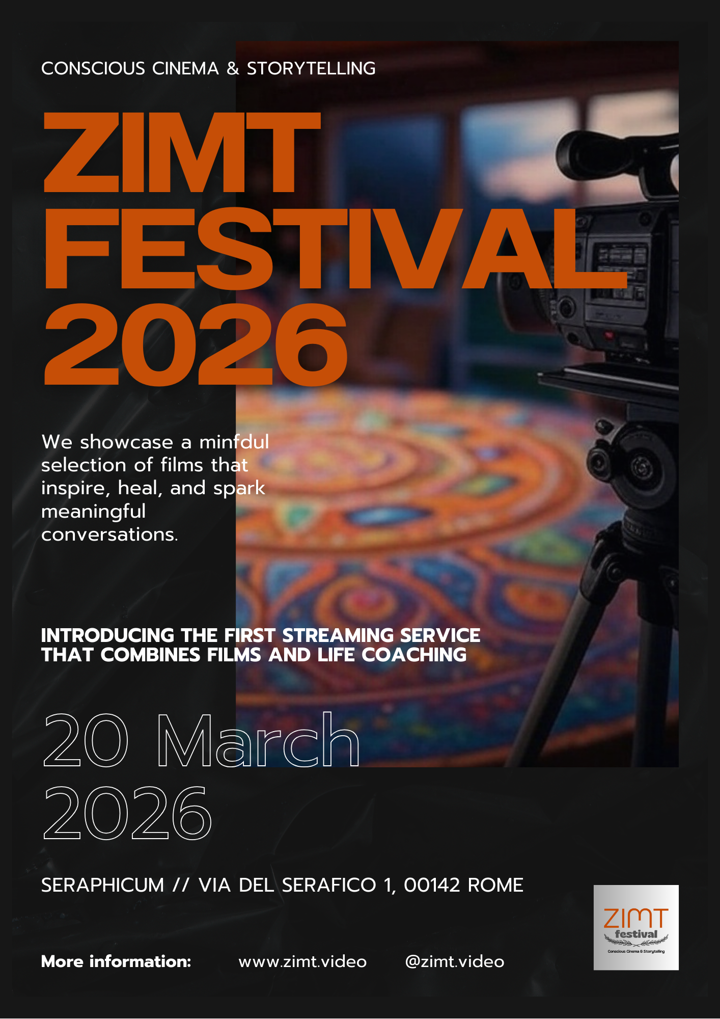 Discover live-action features, documentaries, and shorts that push the boundaries of storytelling, exploring themes like shadow work, spirituality, purpose-driven careers, wellness, mindfulness, and personal transformation. Our inaugural edition will take place on March 20, 2026, at the iconic Seraphicum in the heart of Rome, the Eternal City. ZIMT Festival is a space to reflect, connect, and be inspired alongside filmmakers, coaches, and a community of like-minded viewers.